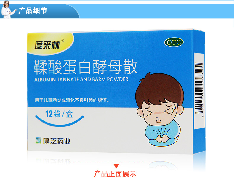 鞣酸蛋白酵母散,适应症为用于儿童肠炎或消化不良引起的腹泻。本品为复方制剂,每包含鞣酸蛋白0.1克、干酵母0.1克。辅料为葡萄糖和二氧化硅。...