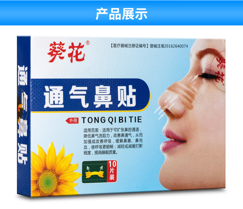 葵花通气鼻贴具有暂时缓解感冒、鼻炎、过敏等引致的鼻塞不适症状,暂时减轻或减缓打鼾程度提高睡眠质量...